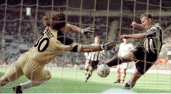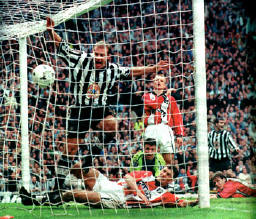 goal threatened a major shock. Newcastle were three points behind Fergie's
