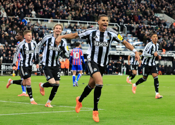 rising to head home at the Gallowgate End after Lewis Miley diverted a Harvey Barnes